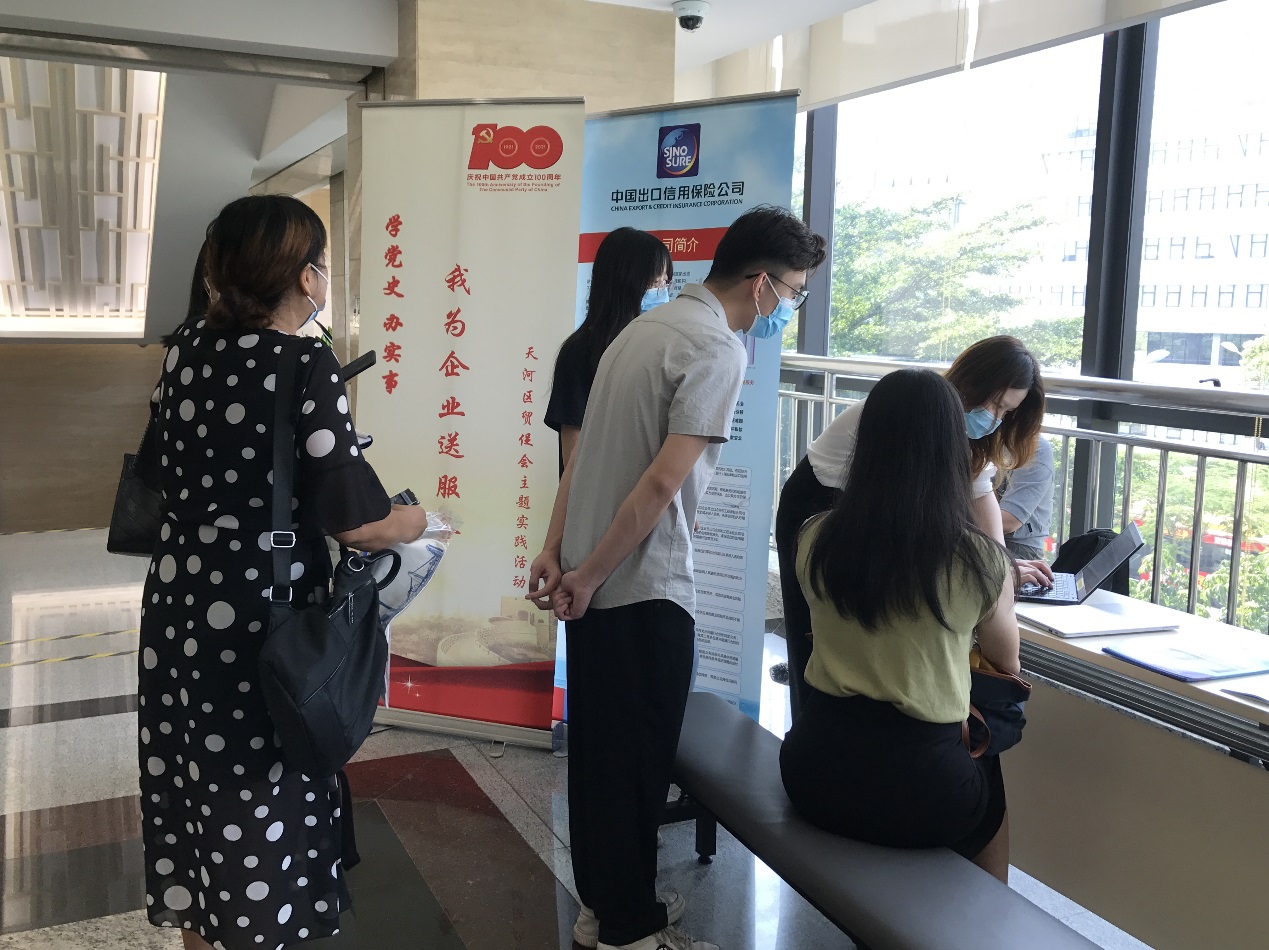 为把开展党史学习教育与贴心服务开启新局紧密结合,帮助企业顺利开展原产地认证等国际经贸商事活动,更好地适应新形势下出口贸易要求,7月28日,天河区贸促会联合中国出口信用保险公司广东分公司、广东广信君达律师事务所在天河区政务服务中心组织开展“我为企业送服务”主题实践活动,通过现场咨询、现场办理的形式为天河区外向型企业提供“一对一”咨询服务,围绕申办原产地证、自贸协定解读、申领免费政策性出口信用保险、商事法律风险防范等业务热情为企业答疑解惑。当天的现场活动得到了企业的赞许,认为活动为外贸企业及时了解掌握自贸协定政策、用足用好政策红利,有效规避涉外商事法律风险,更好“走出去”拓展国际市场提供了帮助。