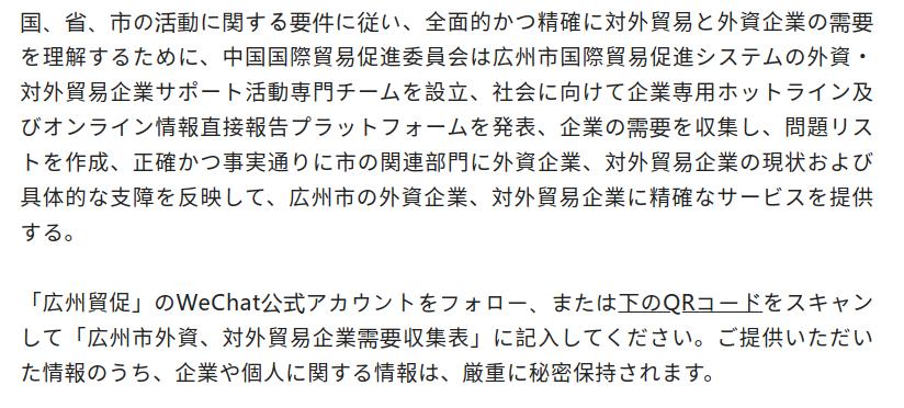 外資系企業向け広州サービスプラットフォームのお知らせ