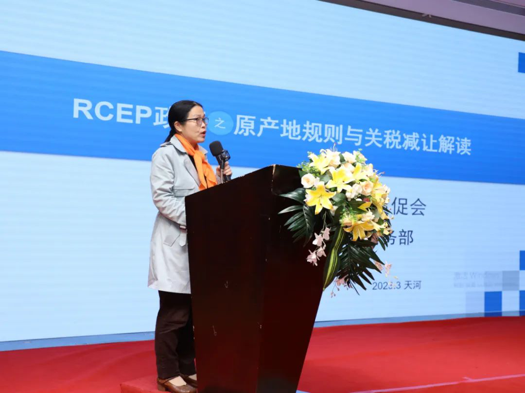 3月31日,广州市贸促会天河区RCEP服务站、广州市经贸摩擦预警中心天河区服务站授牌仪式暨外贸高质量发展政策培训在天河区总统大酒店举办。活动由广州市贸促会和天河区政府主办,天河区贸促会承办。广州市贸促会党组书记、主任杨勇和天河区副区长袁笑一为天河区RCEP服务站、天河区经贸摩擦预警服务站揭牌并致辞。天河区近150家外贸企业代表参加活动。
