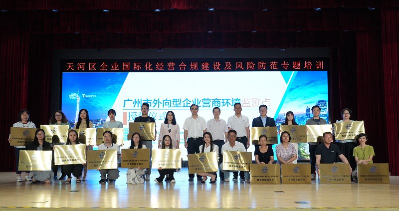 活动举行了广州市首批外向型企业营商环境监测站及监测点授牌仪式,天河区贸促会以及天河区20家有代表性的外向型企业作为监测站及监测点分别上台接受授牌。