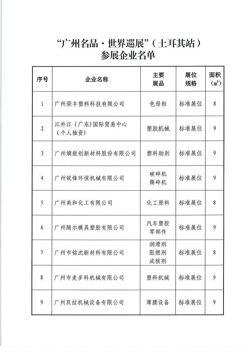 “广州名品·世界巡展”(土耳其站) 参展企业名单公示