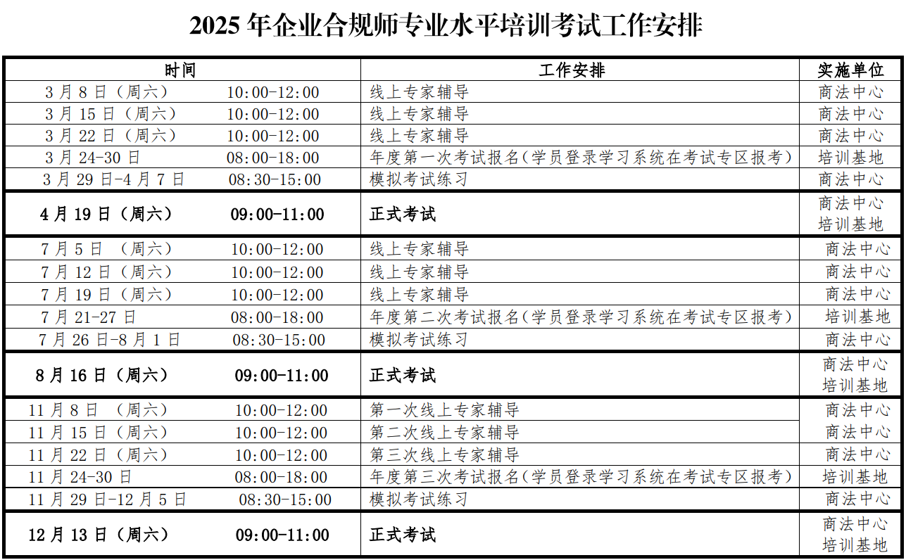 为方便学员随到随学,2025年度企业合规师培训不设报名起止期,在本年度内均可报名培训,早报早学。