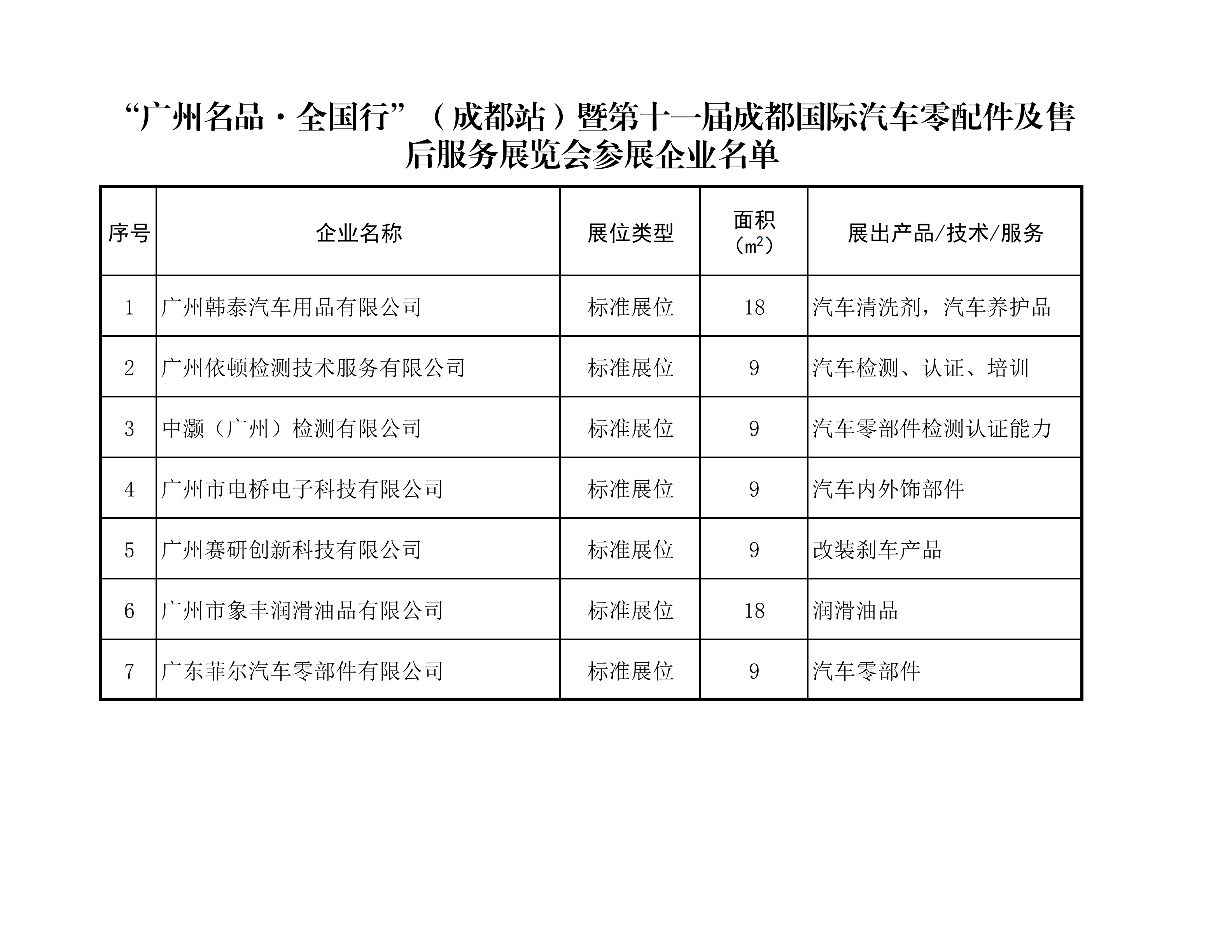 “广州名品·全国行”(成都站)暨第十一届成都国际汽车零配件及售后服务展览会参展企业名单
