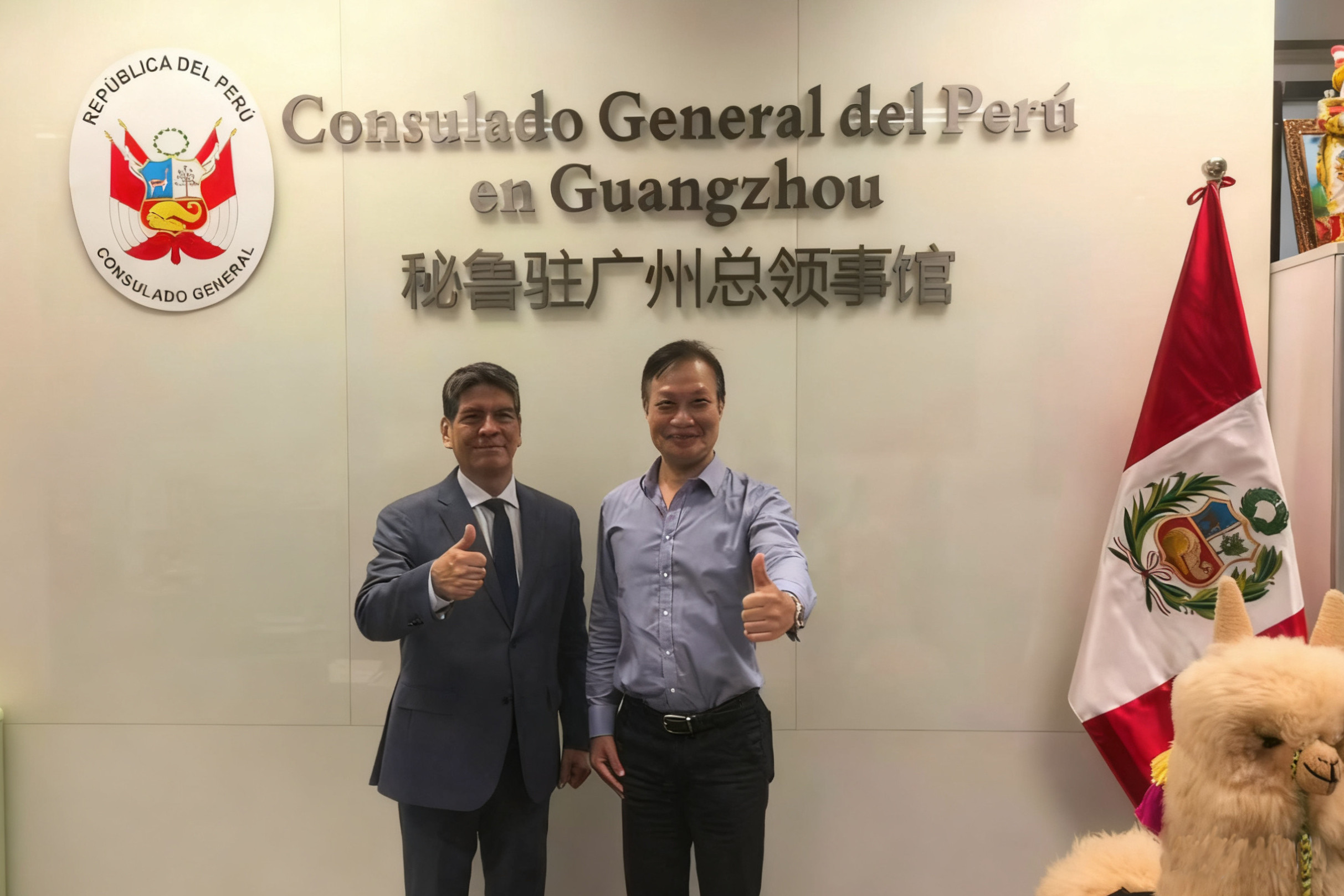 10月17日,我会陈思民主任拜访秘鲁驻广州总领事馆鲁本·埃斯皮诺萨·雷蒙迪(Ruben Espinoza Raymondi)总领事。会谈中,双方聚焦深化多领域合作,就拓展贸易及农产食品合作、企业互访、人文交流等议题深入交换意见。双方表示,期待以此次交流为契机,进一步搭建高效合作平台,推动相关领域合作落地见效,实现互利共赢。