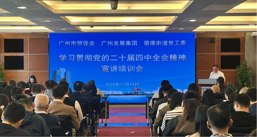 为深入学习贯彻党的二十届四中全会精神,切实把思想和行动统一到党中央决策部署上来,11月14日下午,广州市贸促会联合广州发展集团、猎德街道党工委举办学习贯彻党的二十届四中全会精神宣讲培训会。会议邀请中共广东省委党校教授、硕士生导师董娟主讲,市贸促会领导班子成员及全体党员干部参加培训。