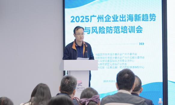 2025年11月20日,由广州市贸促会主办,花都区贸促会承办,花都区化妆品行业协会协办的“2025广州企业出海新趋势与风险防范培训会”在广州花都成功举行。本次培训会以“稳舵合规航向,妆点全球市场”为主题,吸引了来自全市化妆品、箱包皮具等行业的近100名企业代表参与,共同探寻“十四五”收官与“十五五”启航关键节点下的企业出海发展路径。