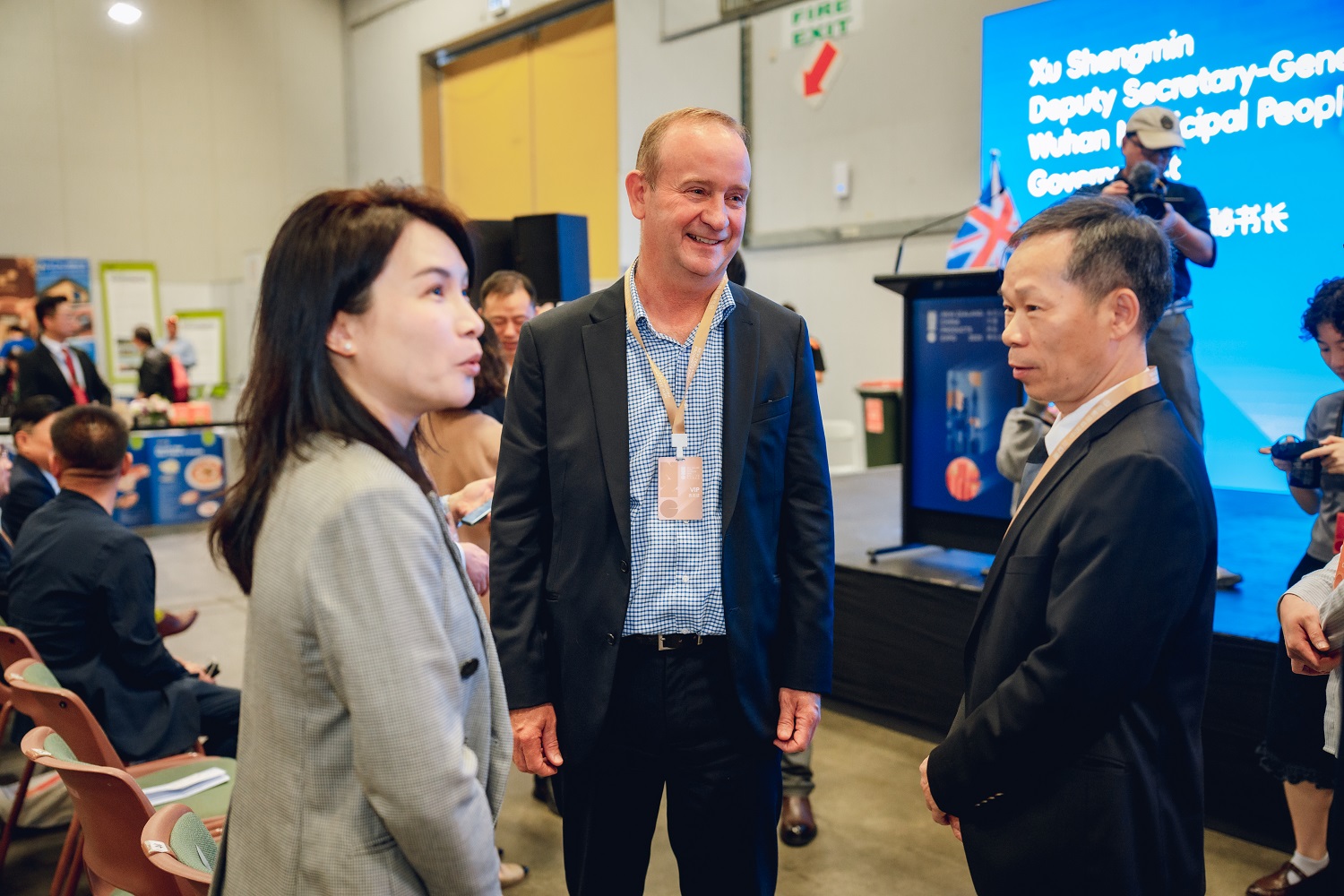 新西兰—中国商品博览会开幕式当天,代表团参加展会开幕式、新西兰—中国双边贸易和投资论坛以及广州市招商投资推介会等系列活动,并与新西兰中国贸易协会、新西兰雇主及制造商协会、新西兰Michael Hills珠宝公司、新西兰物流企业Mainfreight Air & Ocean等外宾亲切交流,推介广州市营商环节,邀请外宾来穗参展观展,并在展会现场调研我市企业参展情况。