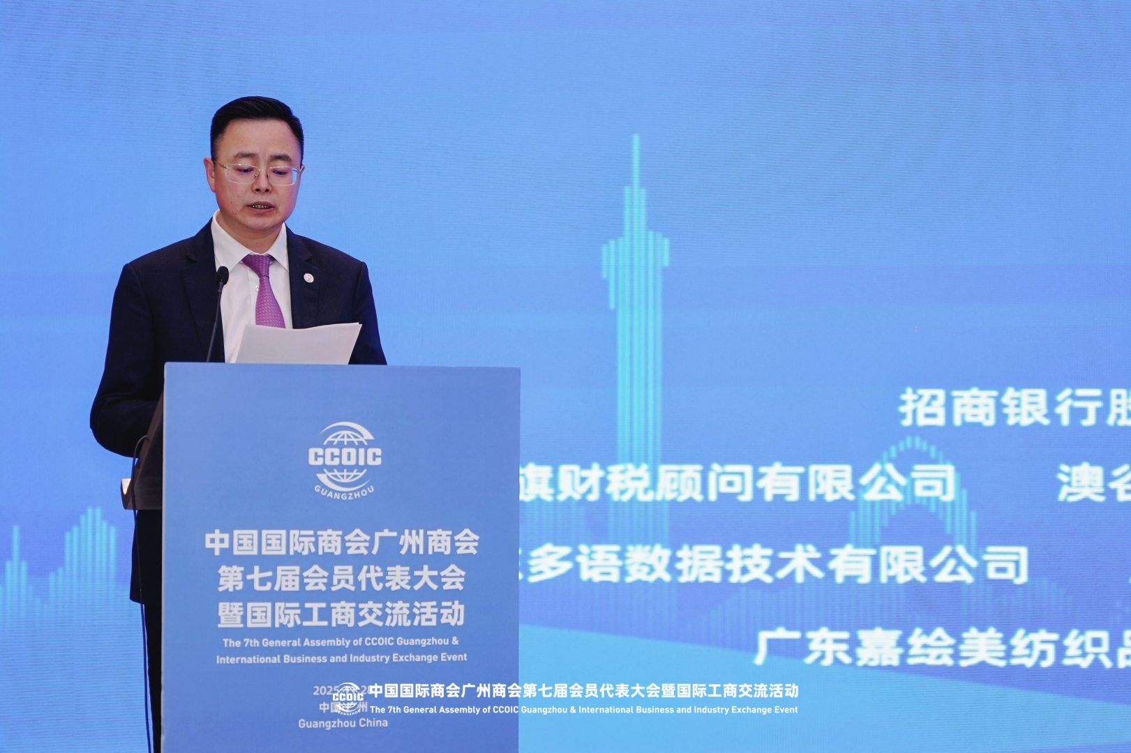 中国国际商会会员部部长徐金丽、广东省贸促会(广东国际商会)一级巡视员白明韶莅临大会并致辞,对广州国际商会的工作给予高度评价,并寄语新一届理事会要把握时代机遇,发挥桥梁纽带作用。