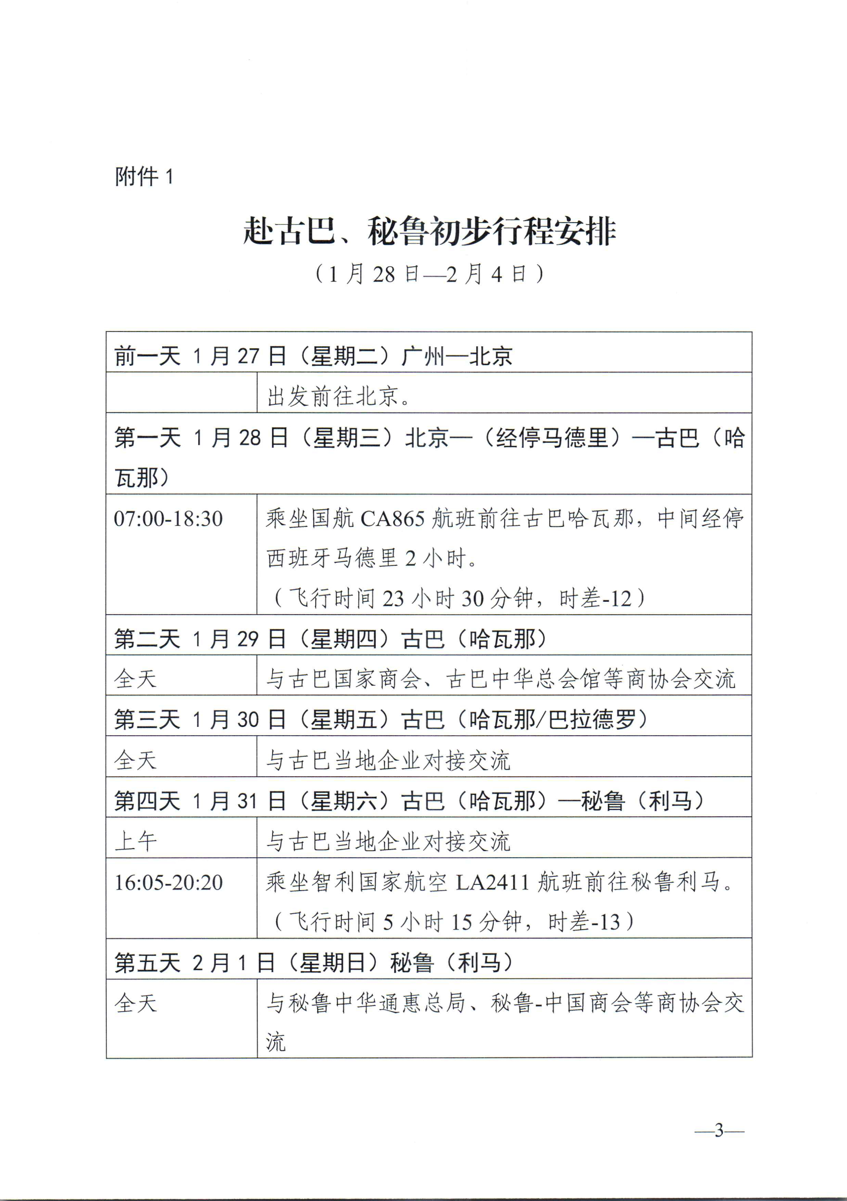 1. 赴古巴、秘鲁初步行程安排