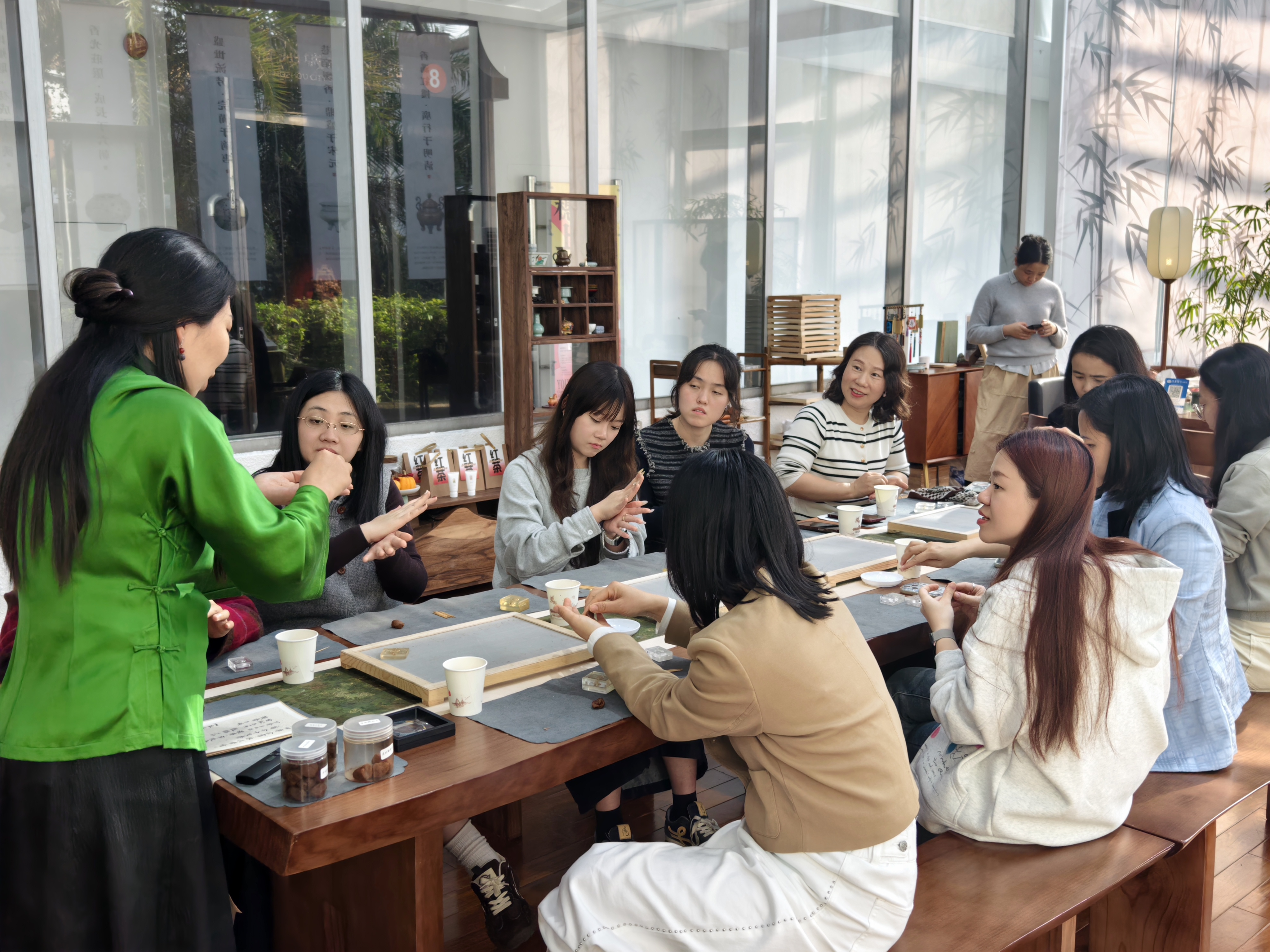 活动特邀非遗传承人宋苗苗老师团队进行现场指导。宋老师深入浅出地讲解了广式合香的历史渊源、配伍原则及“香药同源”的健康功效。女职工们在老师的引领下,领略了岭南文化瑰宝的独特魅力,进一步增强了文化自信与团队凝聚力。