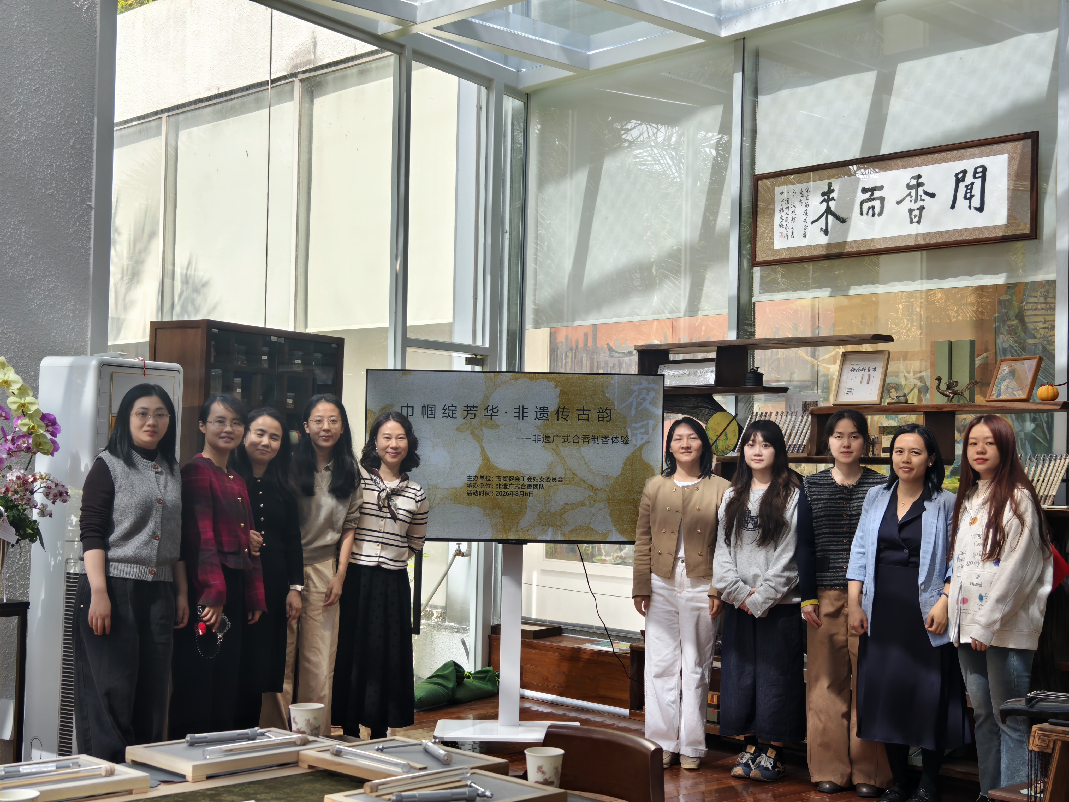 阳春三月,万物复苏。在第116个“三八”国际妇女节即将来临之际,为深入践行社会主义核心价值观,丰富女职工精神文化生活,市贸促会工会、女职工委员会于3月6日下午在广州人民艺术中心举办了“巾帼绽芳华,非遗传古韵”主题体验活动。女职工们齐聚一堂,通过学习非遗广式合香文化,在氤氲药香中感受传统美学,共度古韵时光。
