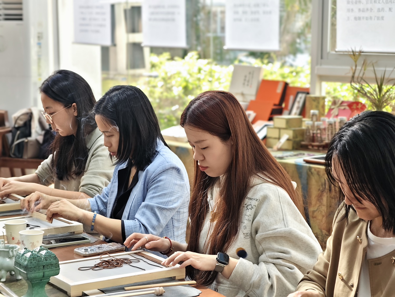 在随后的手工制作环节,活动现场药香萦绕,气氛宁静而雅致。合香珠制作环节,女职工们亲手揉泥、定型,将具有清心、避秽功效的香材串制成个性化的合香珠手链。古法线香体验环节,大家通过挤压成型等传统工序制作线香,在专注的创作中感受静心治愈的匠心力量。