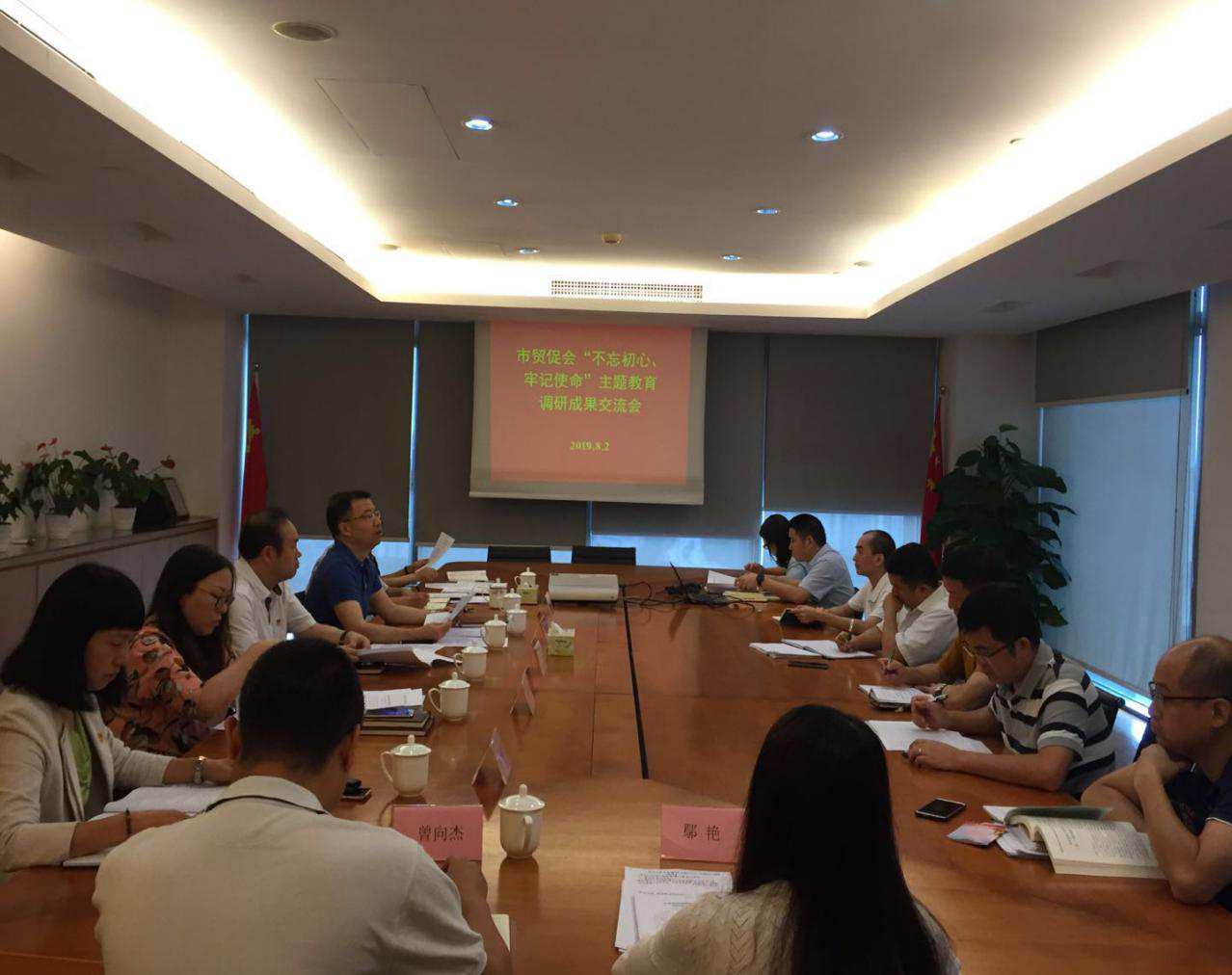 根据主题教育实施方案安排,8月2日上午广州市贸促会在机关会议室召开主题教育调研成果交流会,副处以上领导干部参加,市委主题教育第七巡回指导组李兵副组长率队到会指导。