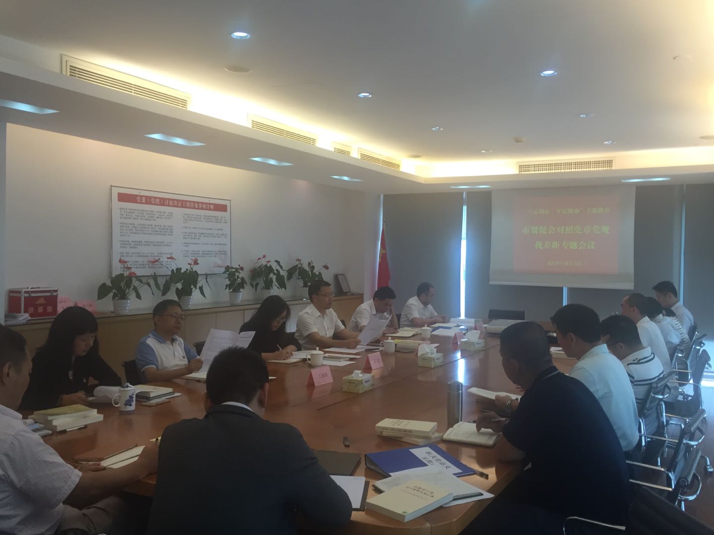 根据主题教育实施方案安排,8月15日下午广州市贸促会在机关会议室召开对照党章党规找差距专题会议,副处以上领导干部参加。